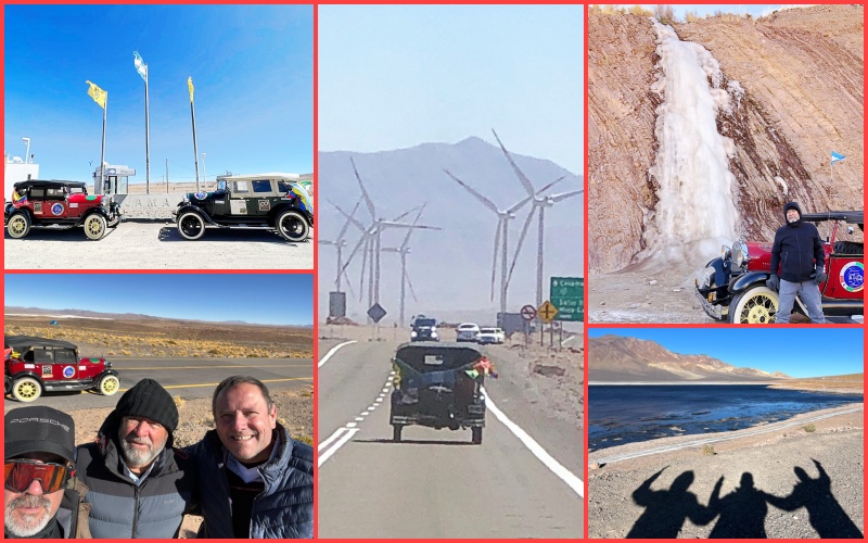 Con algunos inconvenientes en los pasos fronterizos, pero dándole solución, siguen adelante con la travesía en autos Ford…