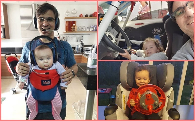“Ella seguirá los pasos de su papi”, escribió Sebastián Luque sobre la base de una de las fotos…
