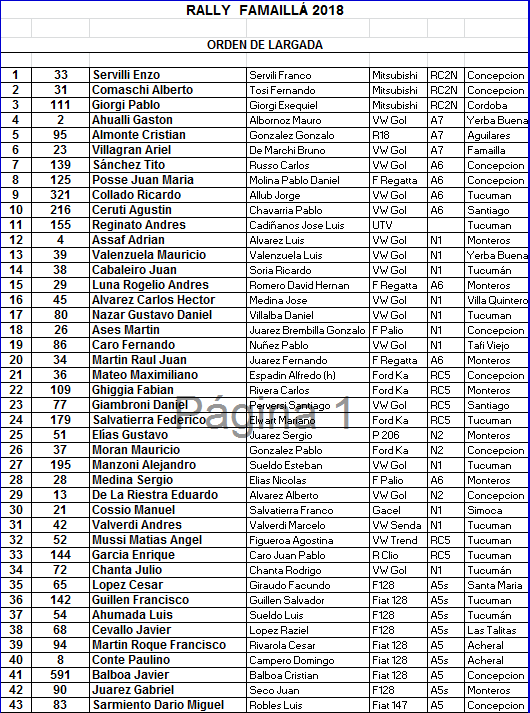 Con 43 tripulaciones se puso en marcha el Rally de Famaillá, fecha 1 del Campeonato Provincial. La carrera, que se extenderá hasta el domingo, tiene durante el sábado tres especiales. Por la noche, a las 21, se espera la ceremonia de largada simbólica en la plaza principal de la ciudad.
