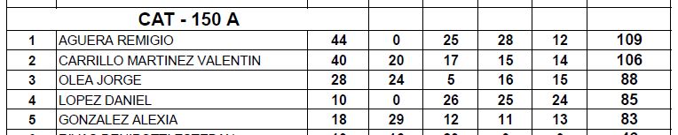 Remigio Agüera encabeza el certamen con una ventaja de apenas tres puntos sobre Valentín Carrillo Martínez. Pero no son los únicos: con 48 puntos en juego, Jorge Olea se ubica tercero a 21 unidades, cuarto aparece Daniel López a 24 y quinta Alexia González a 26.