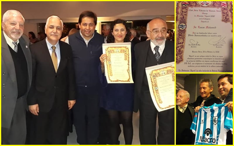 Lucas Mohamed viajó para recibir una distinción en el Club Sirio Libanés de Buenos Aires. Fue una velada cargada de emociones para el piloto y preparador. “Fue una noche hermosa. Compartir con gente que se se supera día a día realmente ¡te llena más de energía! Y me sentí muy a gusto como si fueran mi familia, es la paisanada donde estuvo más presente que nunca mi abuelo”, contó.