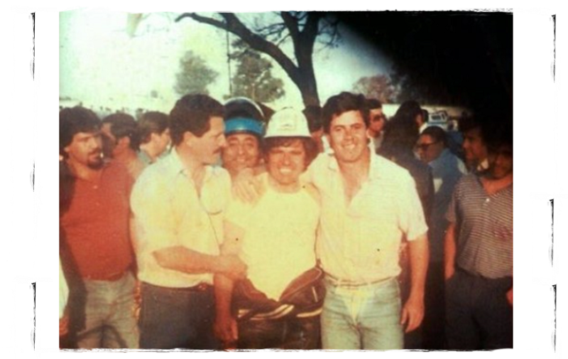Me quedan muchos recuerdos, en especial la foto con la que acompaño estas palabras. La sacaron el día en que les ganó al campeón argentino y a los mejores pilotos y equipos oficiales del país. La gran cantidad de gente que había en el autódromo vivió en aquella oportunidad algo increíble. Los porteños no podían creer que un piloto tucumano les gane con ese “catre”, como le decían ellos comparando la 55 de “Tin” con toda la tecnología que tenías sus motos.