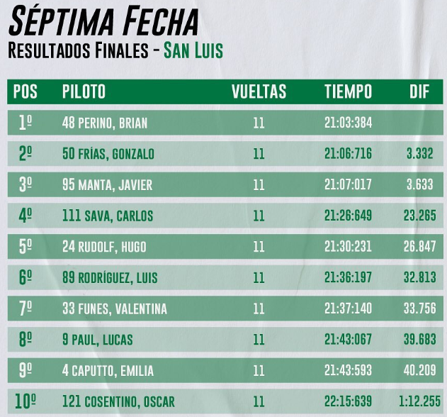 Con un buen trabajo y a ritmo sostenido, Gonzalo Frías ocupó el segundo lugar en la final de la fecha 7 de la Liga SpeedAgro Racing, que se desarrolló en el autódromo “Rosendo Hernández” de San Luis.