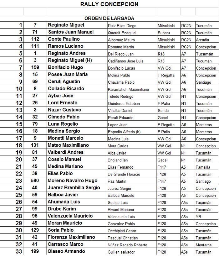 Serán 33 las tripulaciones que tomarán parte del Rally de Concepción, fecha 3 del Campeonato Provincial que se corre el domingo.