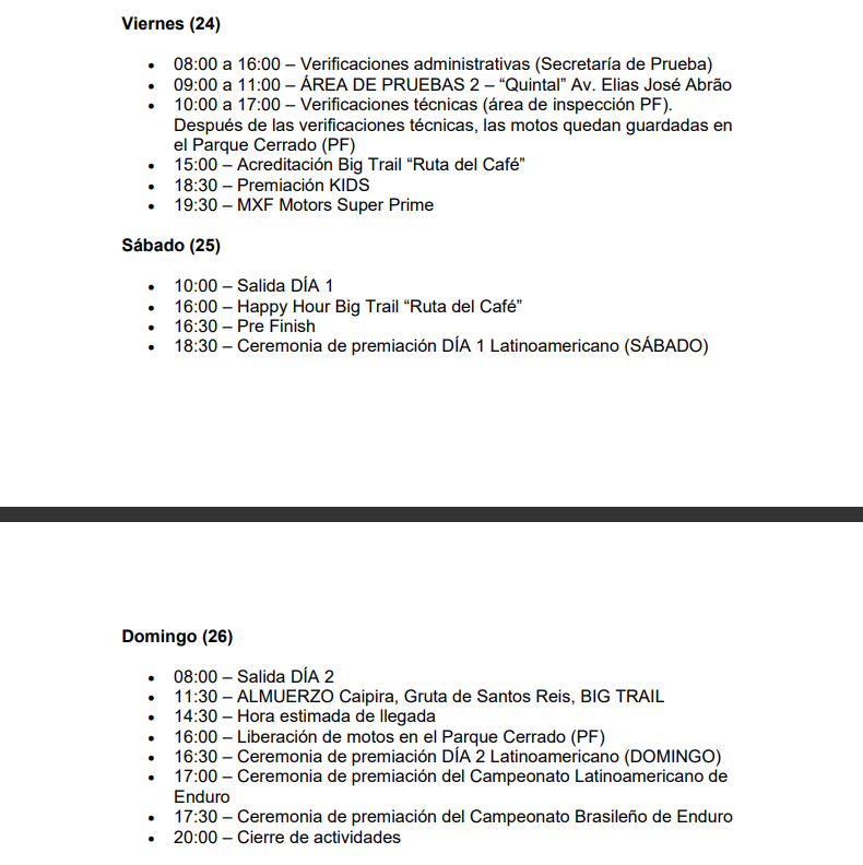 Esta será la carrera en la que se definirán los nuevos campeones latinoamericanos de la disciplina. La capital mineira se prepara para recibir a la delegación latinoamericana y ofrecer un escenario competitivo donde el talento, la técnica y el compañerismo se conjugan bajo el espíritu del enduro continental.