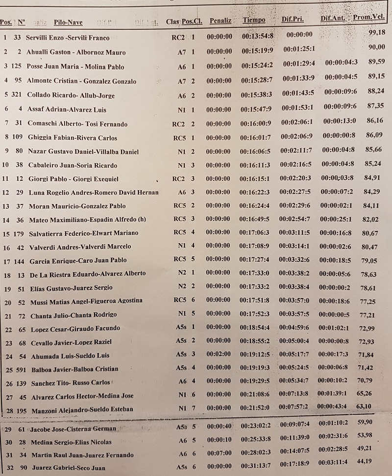 El concepcionense Juan María Posse domina la A-6; el monterizo Adrián Assaf lo hace en la N-1; el también monterizo Fabián Ghiggia está en la vanguardia de la RC5; Eduardo de la Riestra está al frente en la N-2 y el santamariano César López impone condiciones en la unificada A-5s. En estas últimas dos categorías se registran las luchas más cerradas por la victoria.