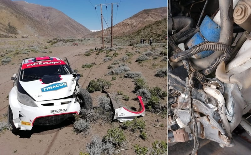 Con un Ford Fiesta que navega el puntano Gonzalo Díaz, el experimentado corredor salió a buscar el mejor resultado posible. Pero cuando apenas se concretaba los primeros kilómetros de competencia, se salió de camino, pegó contra un poste y rompió su coche. El domingo ya no habrá carrera para él.
