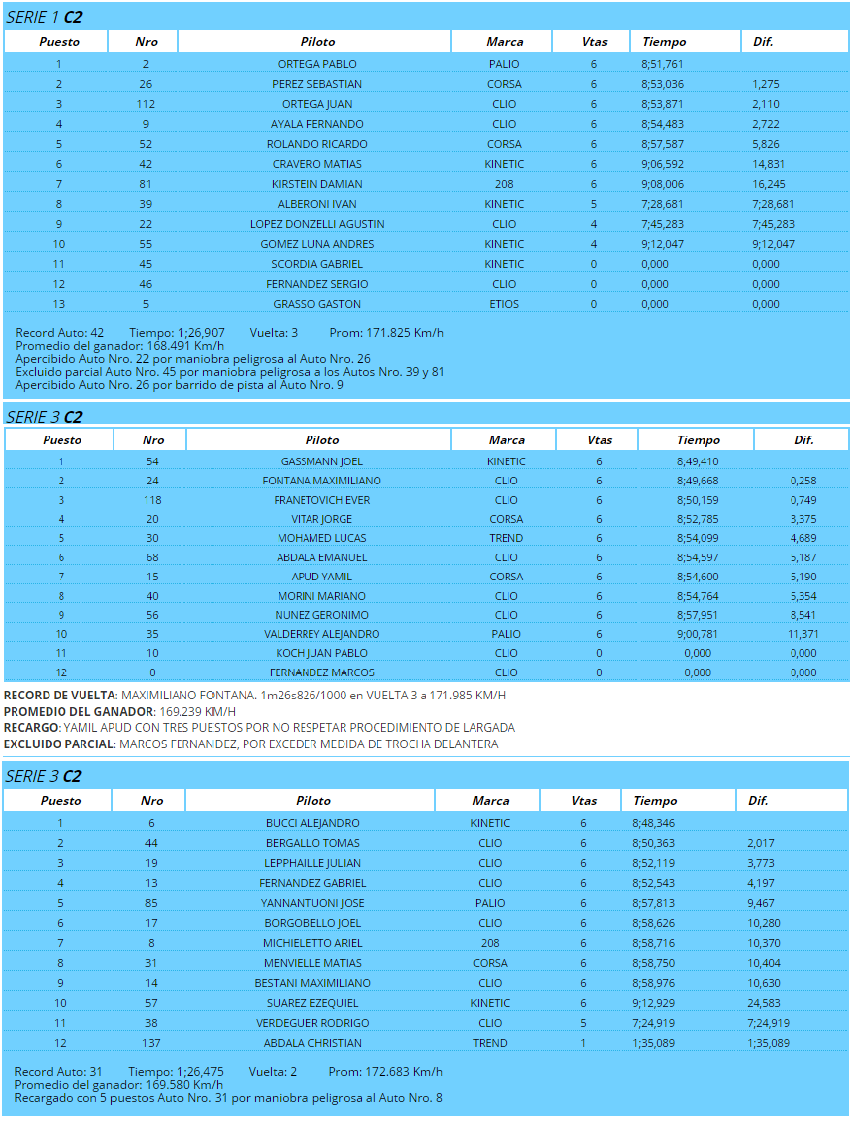 Además de Ortega, otros ganadores de series fueron Joel Gassman y Alejandro Bucci, ambos con Ford Fiesta Kinetic.