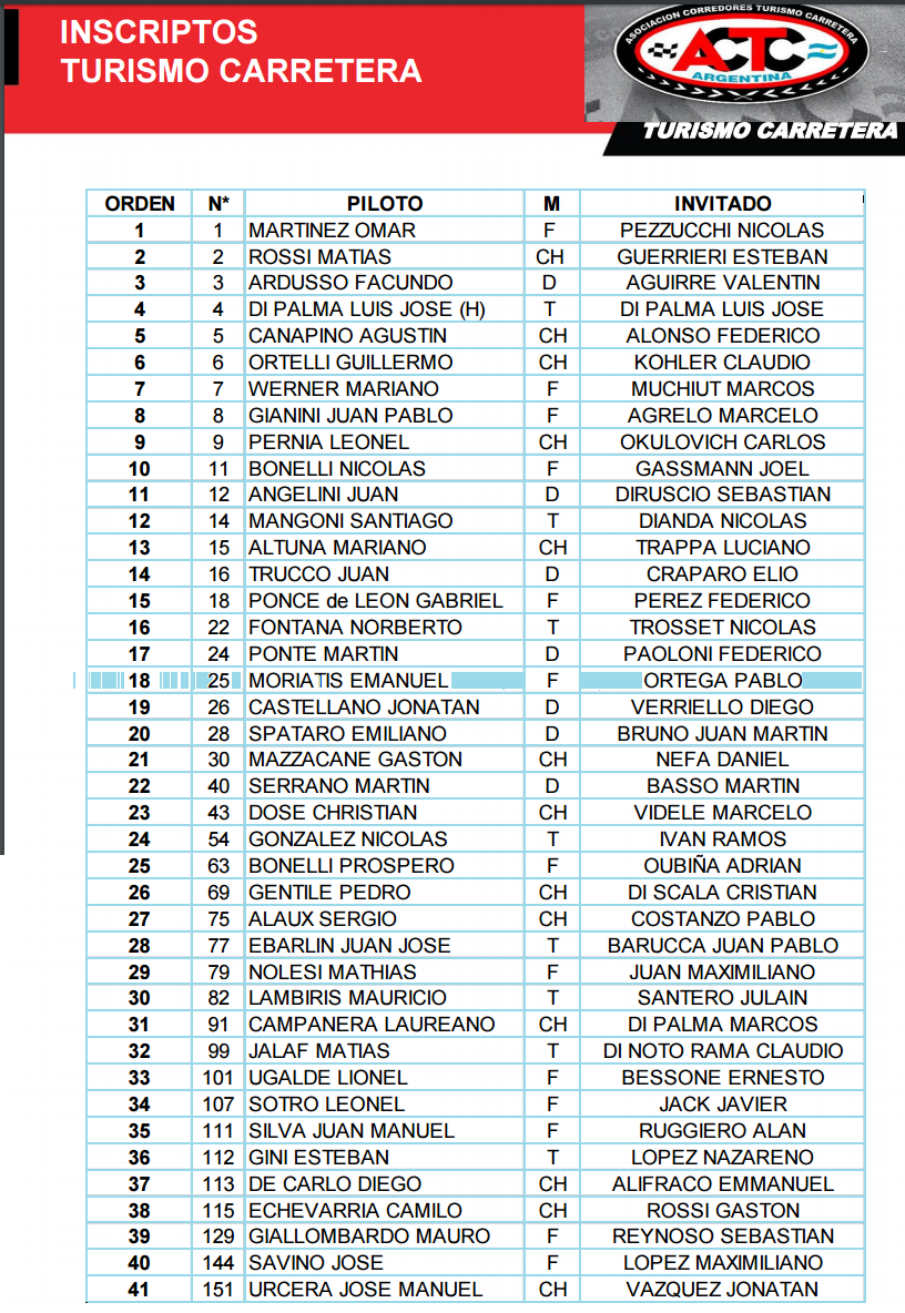 Si bien la actividad en pista se inicia el viernes a las 9.30 con el TC Pista, el TC comienza su tarea a las 12, con la práctica, recarga y cambio de piloto, por grupos; a las 14.05 será tiempo de los primeros entrenamientos. Una segunda tanda de ensayos se iniciará a las 16.20.